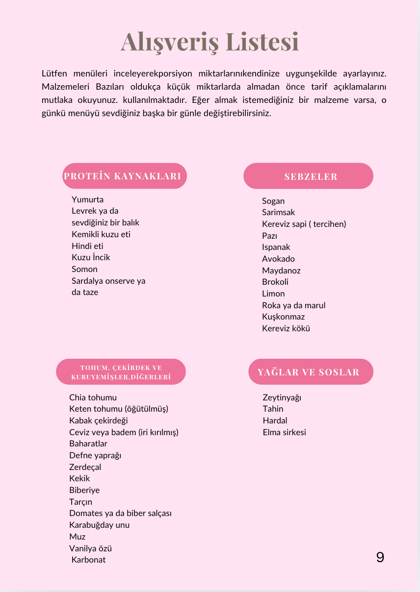 Uygulanabilir menüler, pratik tarifler ve farkındalık odaklı yönlendirmeler içeren etkileşimli bir PDF’tir.